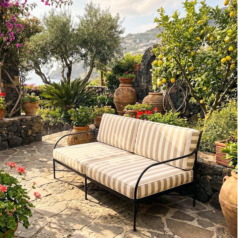 Die zeitlos-eleganten Eisenmöbel vereinen Ästhetik, Langlebigkeit und Zweckmäßigkeit, da sie im Winter nicht drinnen gelagert werden müssen. Um Staunässe zu vermeiden, ist es ratsam, Eisenmöbel nach dem Regen in der Sonne trocknen zu lassen, bevor man sie abdeckt.